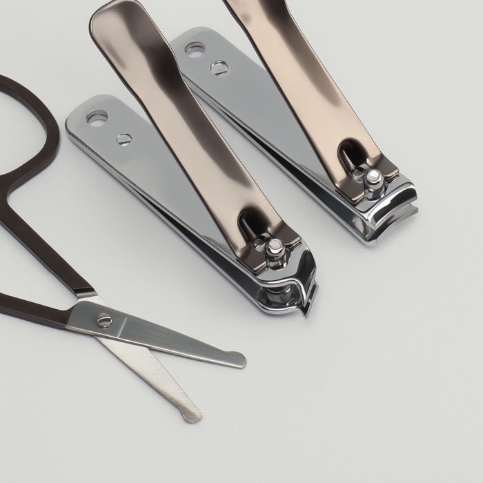 Набор маникюрный, 8 предметов, в футляре, цвет коричневый