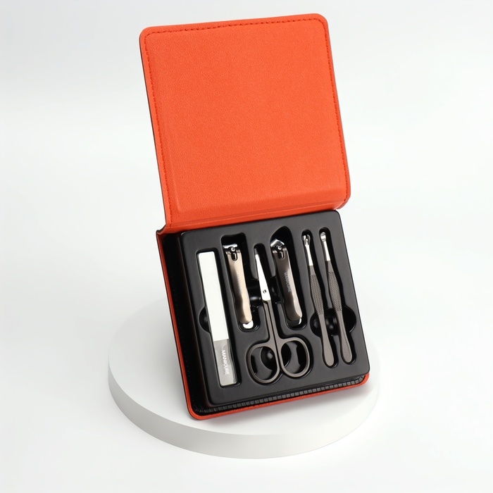 Набор маникюрный, 6 предметов, в футляре, цвет оранжевый/чёрный