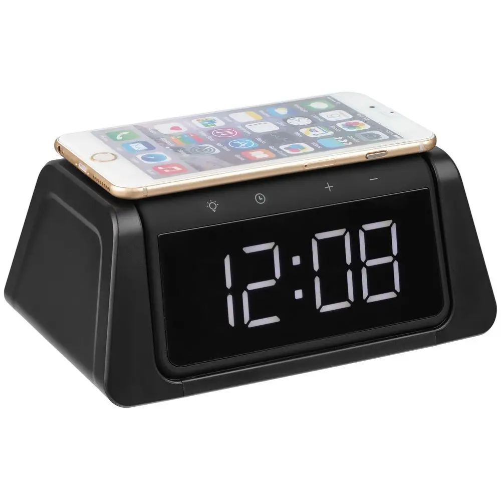Часы настольные с беспроводным зарядным устройством Pitstop, белые