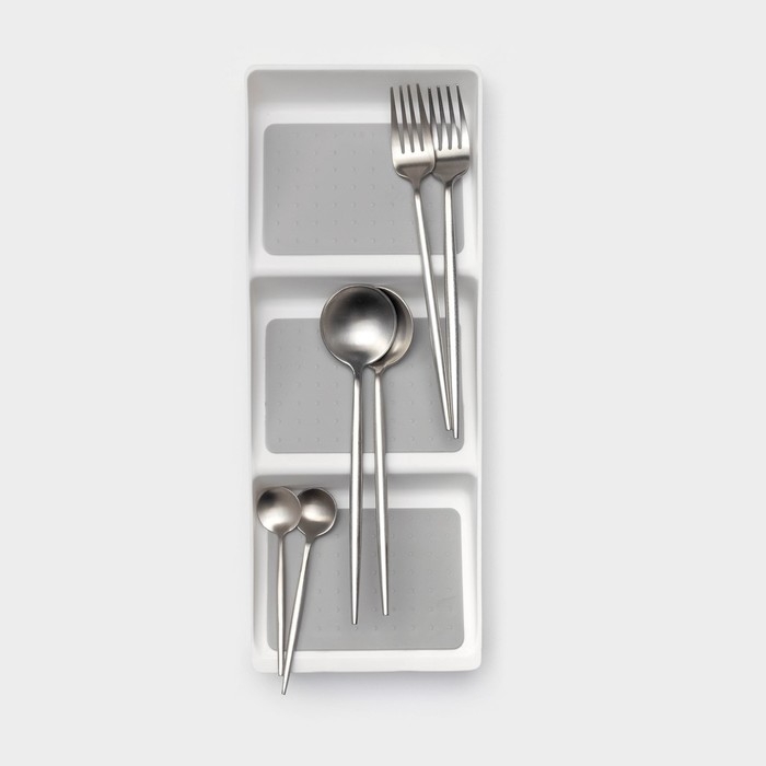 Лоток для столовых приборов Griten, с силиконовой вставкой, 3 секции, 39×15×5 см, цвет белый