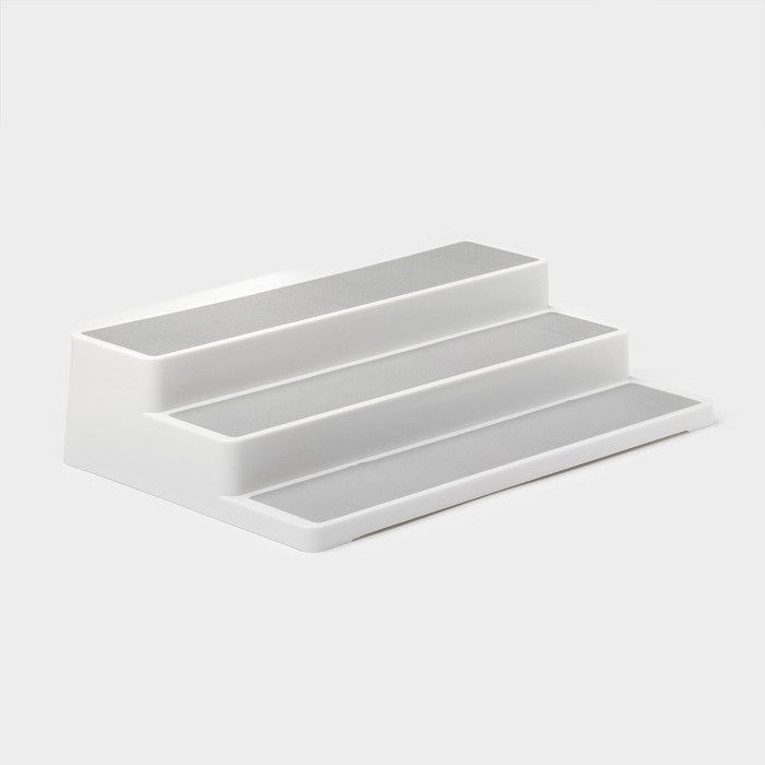 Подставка изготовлена из прочного пластика с накладками с антискользящим покрытием, конструкция имеет вид лестницы в 3 яруса.