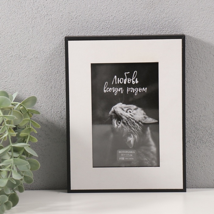 Фоторамка МДФ на 1 фото 10х15 см с белым паспарту "Энрика" черная 3х16х21 см