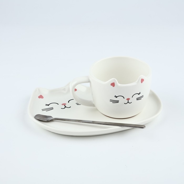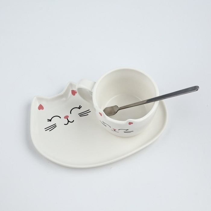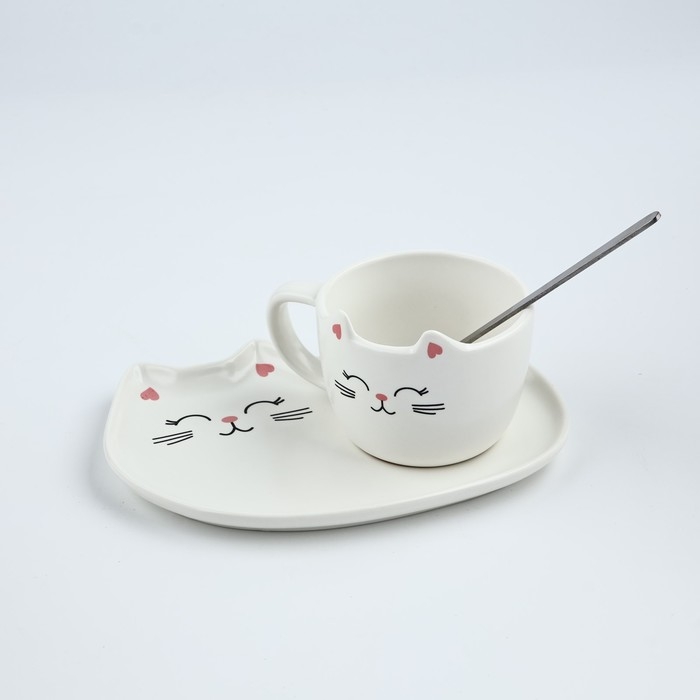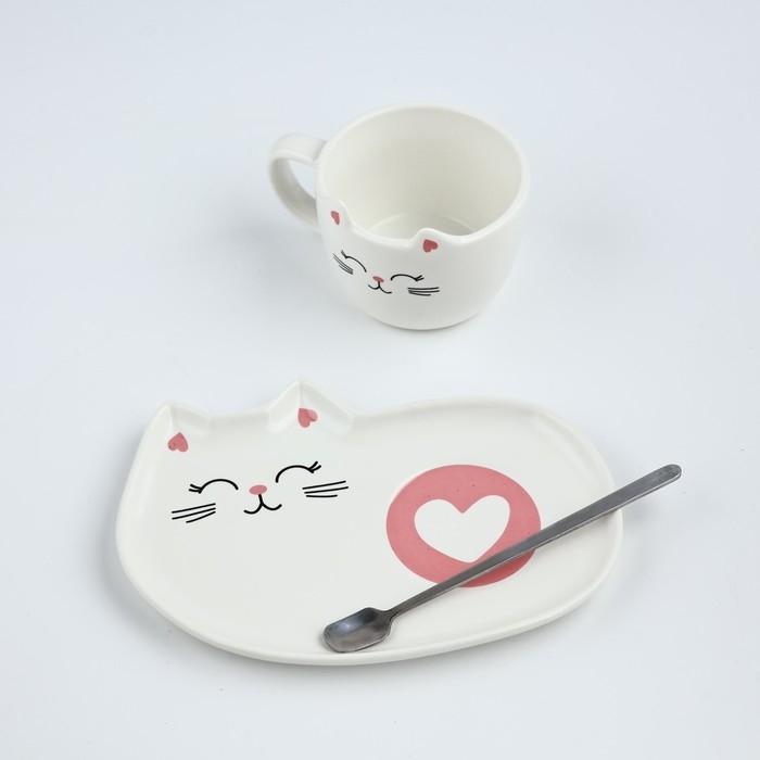Набор «Кошечка» состоит из кружки объёмом 200 мл, блюдца и ложечки.