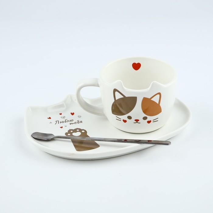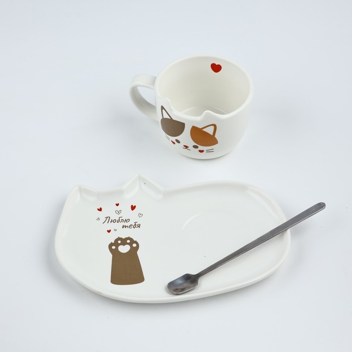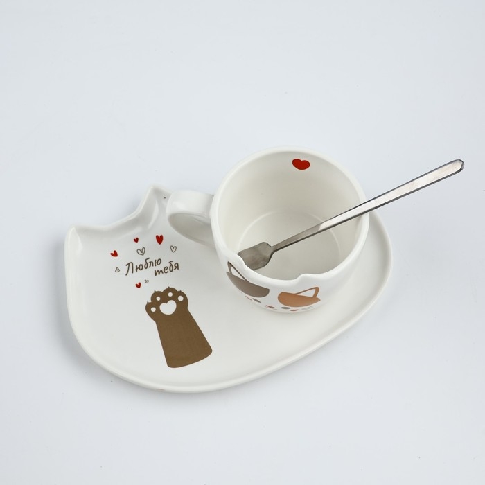 Набор «Люблю тебя» состоит из кружки объёмом 200 мл, блюдца и ложечки.