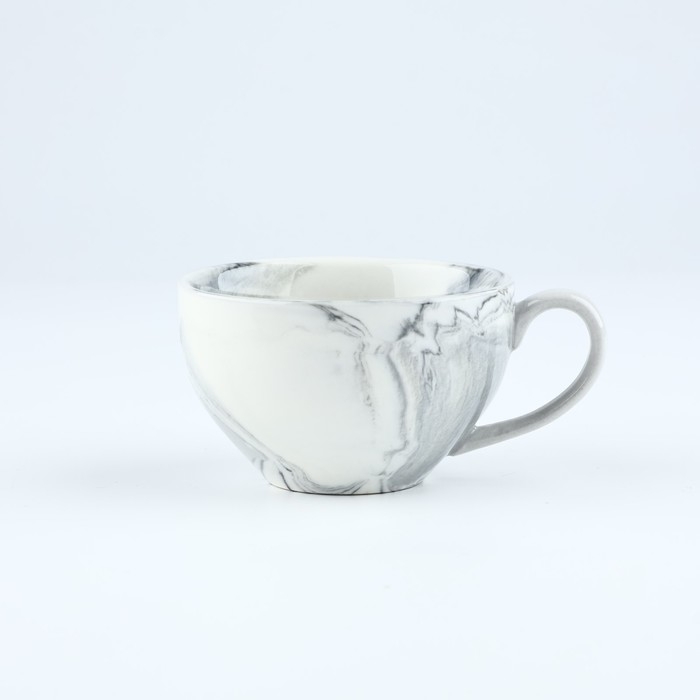 Кофейная пара фарфоровая «Мрамор», 2 предмета: чашка 90 мл, блюдце d=11,2 см, цвет белый