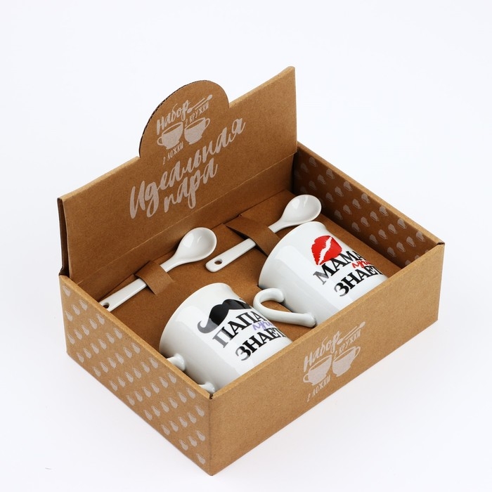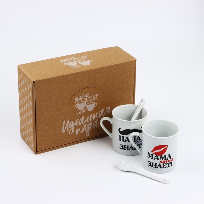 Набор "Мама и папа", кружка 140 мл. 2 шт., ложка 2 шт.