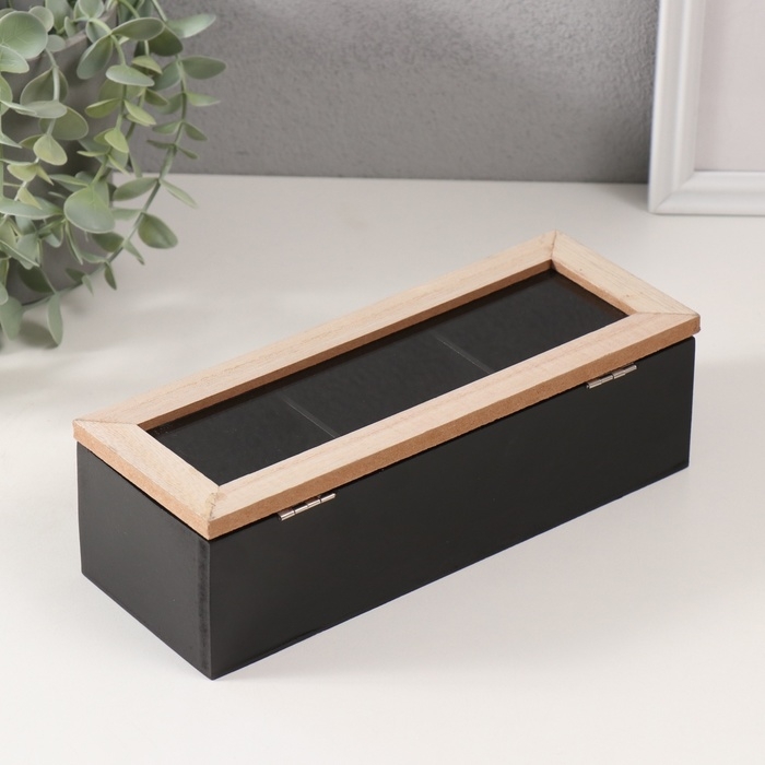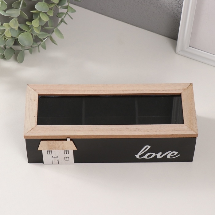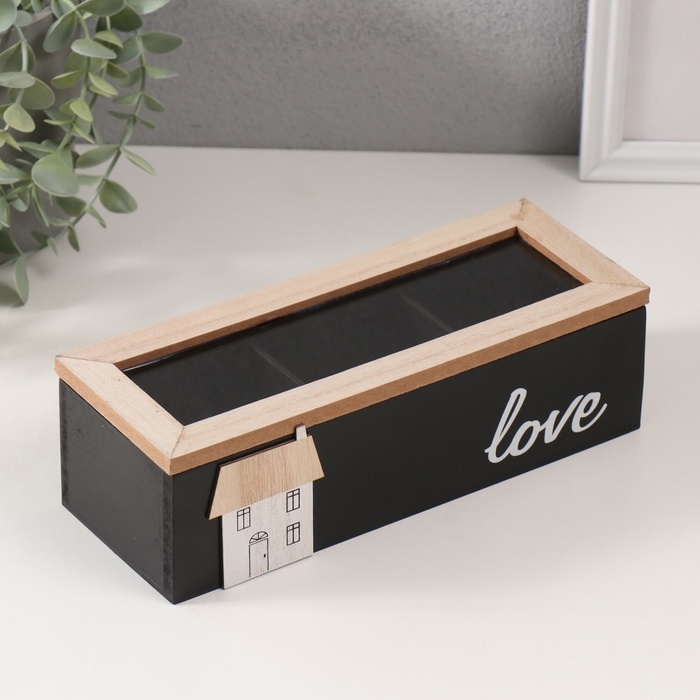 Шкатулка дерево с делениями "Домик" чёрная 23,7х9,5х7,5 см