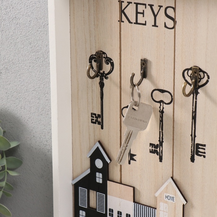 Крючки декоративные дерево "Ключи и домики" 20х30 см