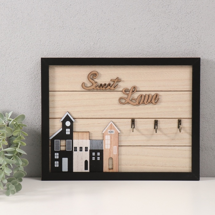 Крючки декоративные дерево "Домики в раме" 31х24 см