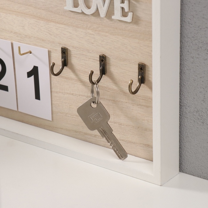 Крючки декоративные дерево с календарём "Сердце с бантом" 30х20 см