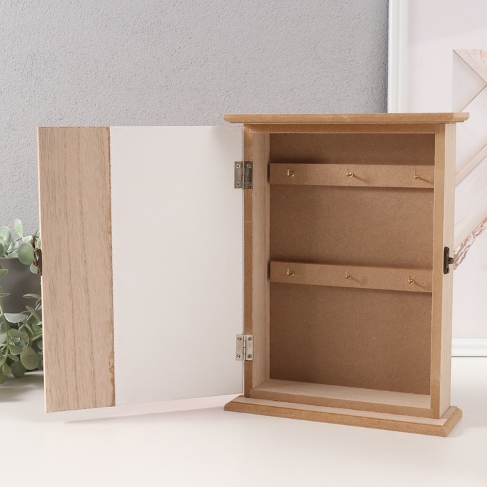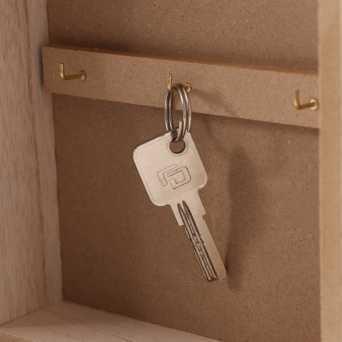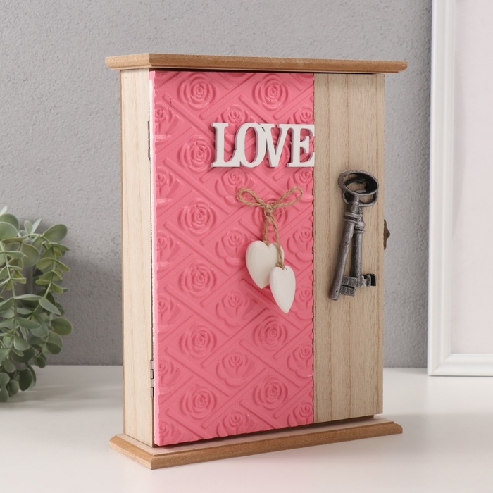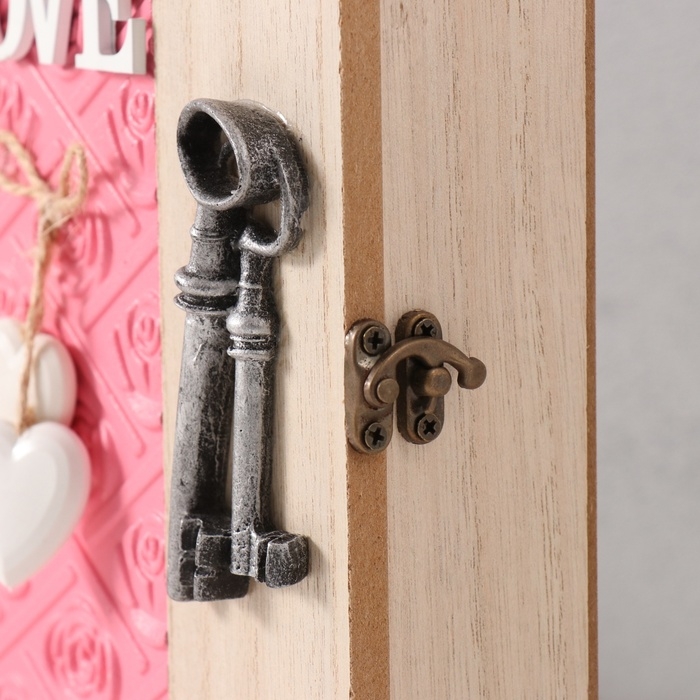 Ключница дерево 6 крючков "Круги. Ключи и сердце" розовый 6,5х20х26,5 см