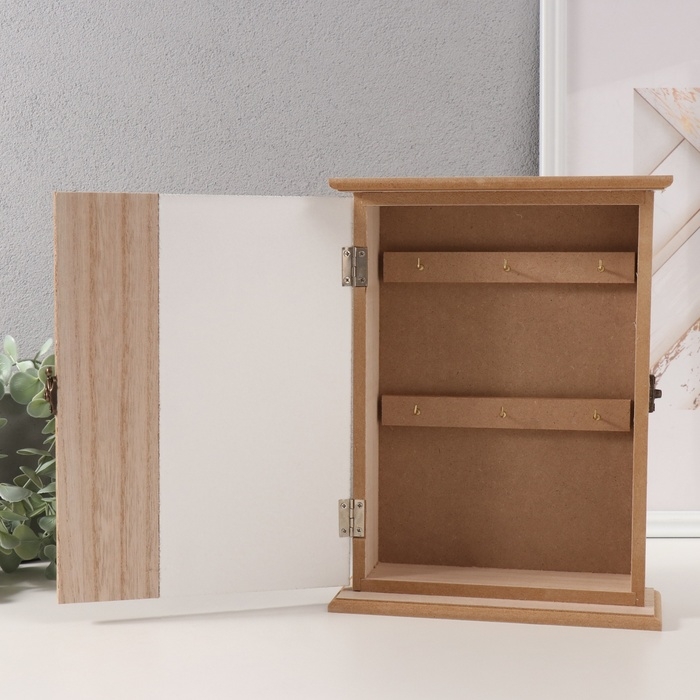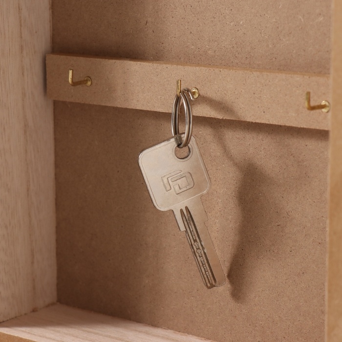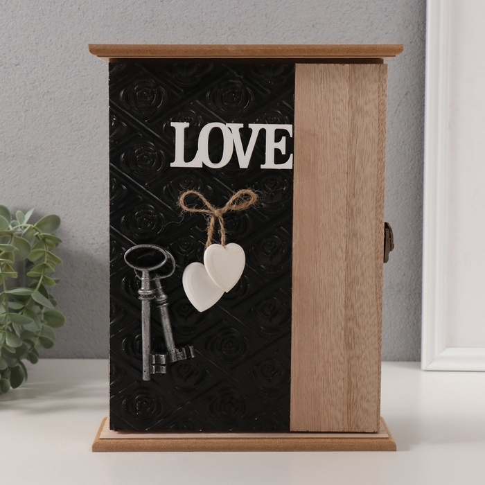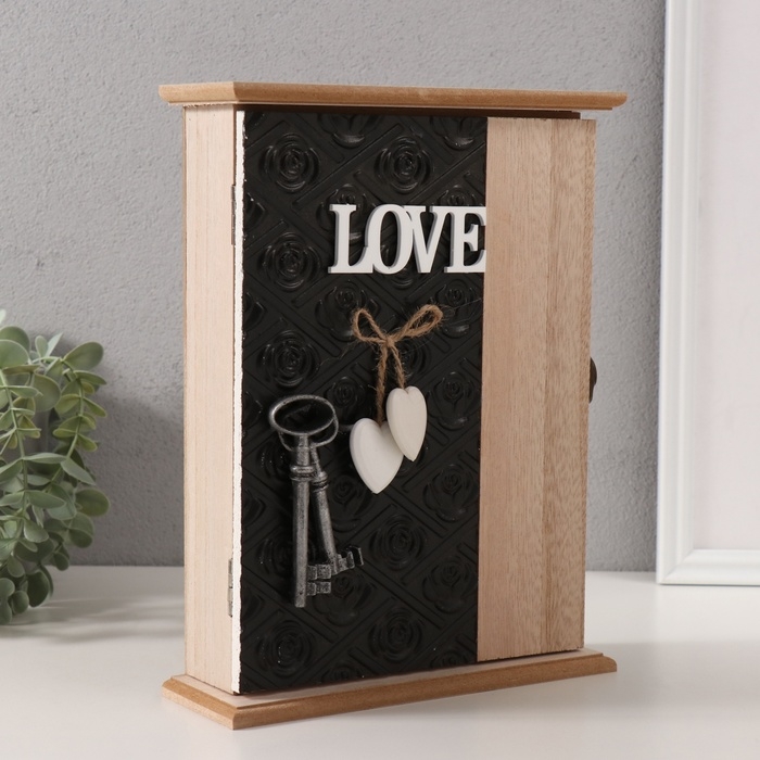 Ключница дерево 6 крючков "Отпечаток листьев. Ключи и сердце" чёрный 6,5х20х26,5 см