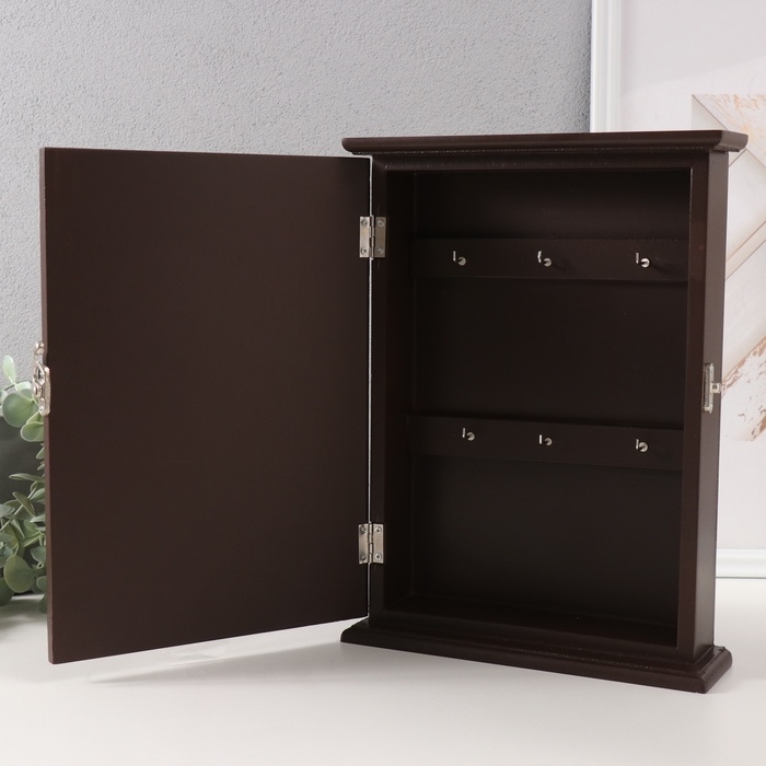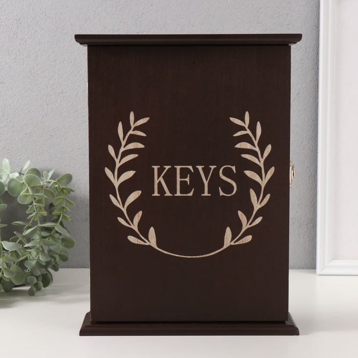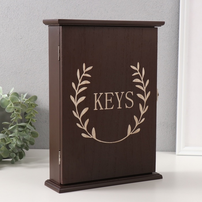Ключница дерево 6 крючков "Растительный венок" кофейный 6х22х30 см