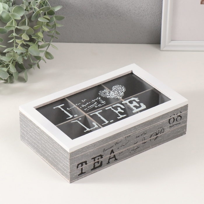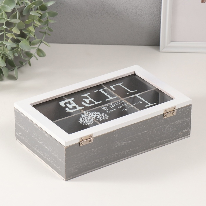 Шкатулка дерево 6 делений "Я люблю жизнь" серо-белая 15х24х7 см