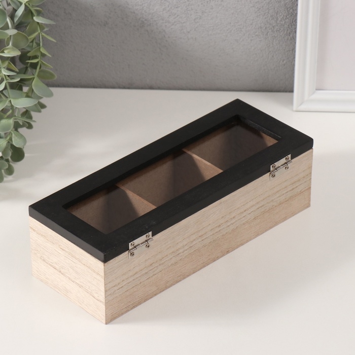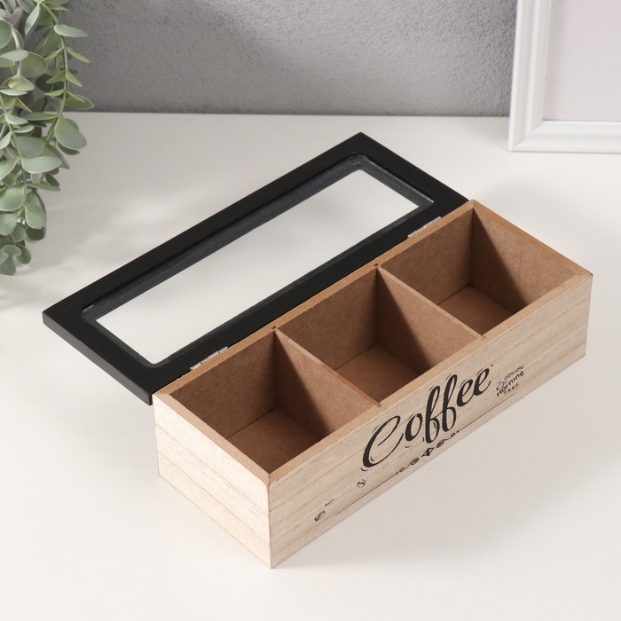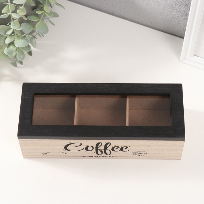Шкатулка дерево 3 деления "Утро начинается с кофе" 9х23,4х7,2 см