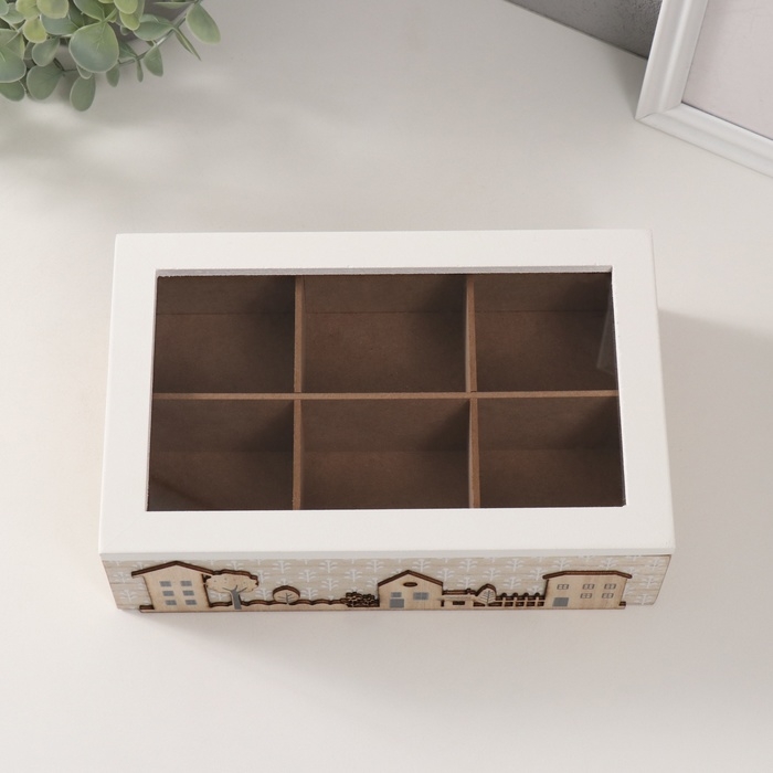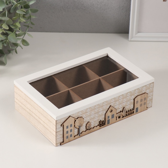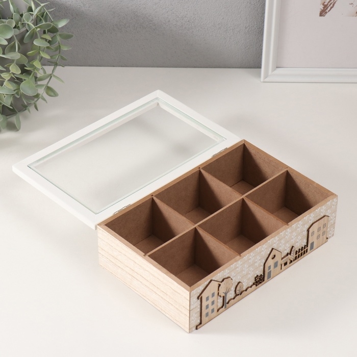Шкатулка дерево 6 делений "Домики и деревья" 15,4х23,4х7,2 см