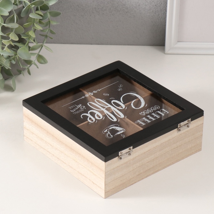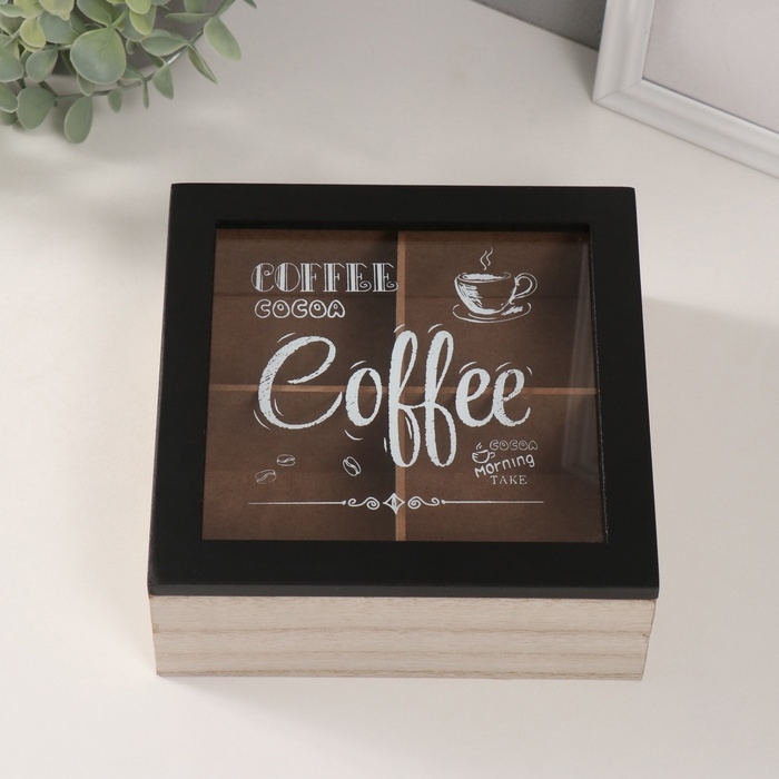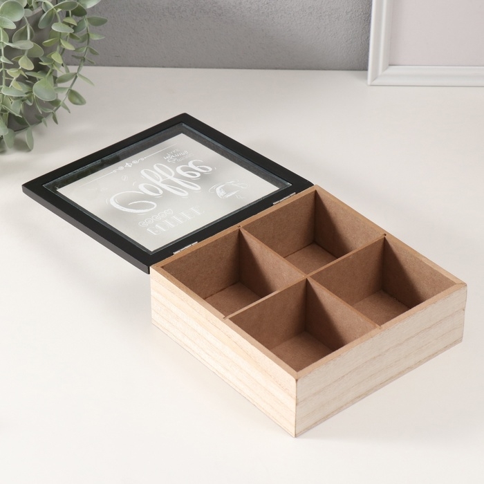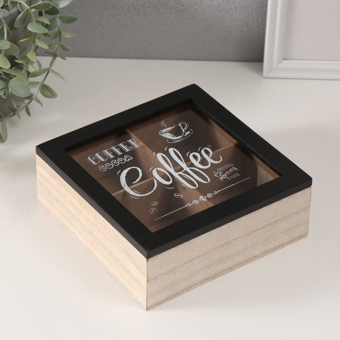 Шкатулка дерево 4 деления "Утро начинается с кофе" 18,2х18,2х7,2 см