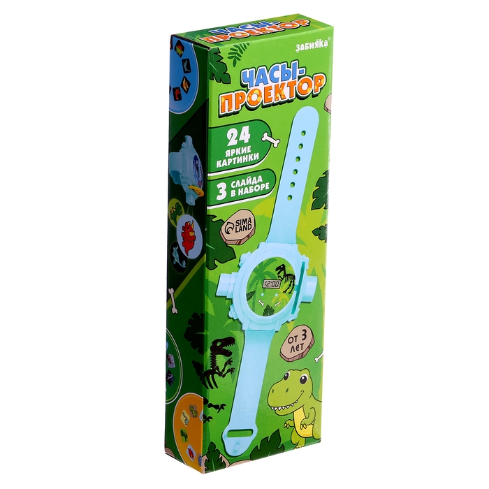 Часы-проектор «Динозавры», световые эффекты, 24 картинки, цвет голубой