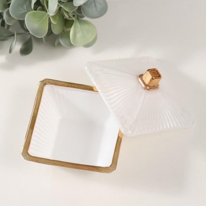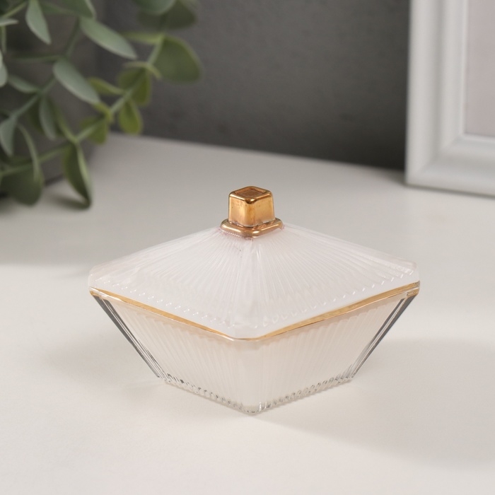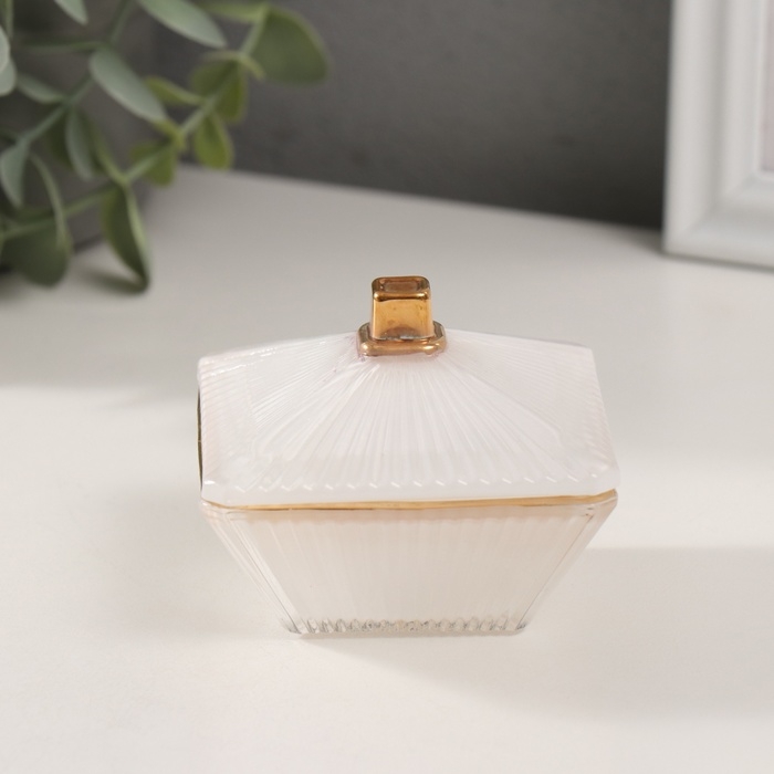 Шкатулка стекло "Вспышка" белая с золотом 7,5х7,5х6 см
