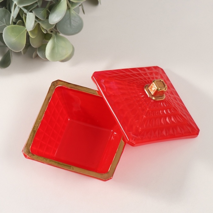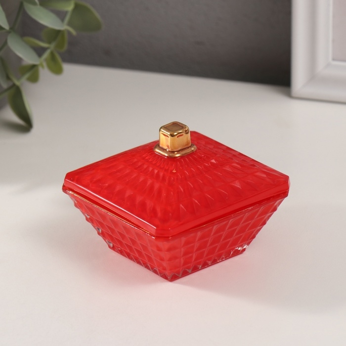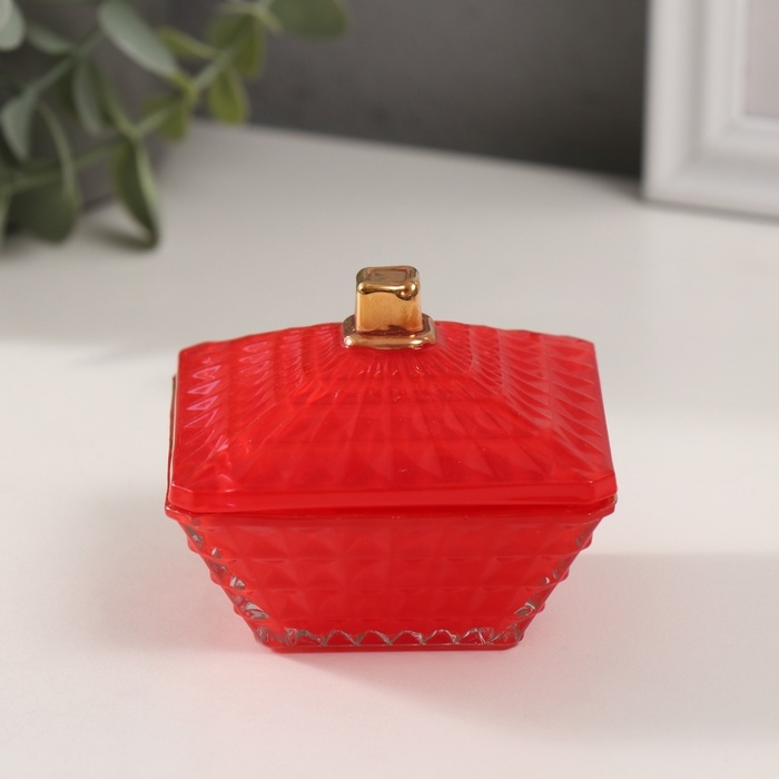 Шкатулка стекло "Вспышка" красная с золотом 7,5х7,5х6 см