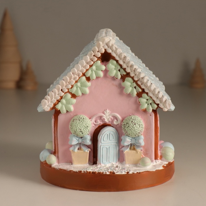 Сувенир полистоун свет "Пряничный домик с зеленью" зефирный 12,5х12,5х12,5 см