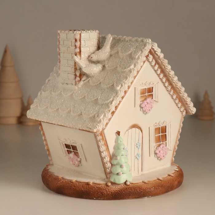 Сувенир полистоун свет "Пряничный домик с узорами, с птицами" 16,5х16х17 см