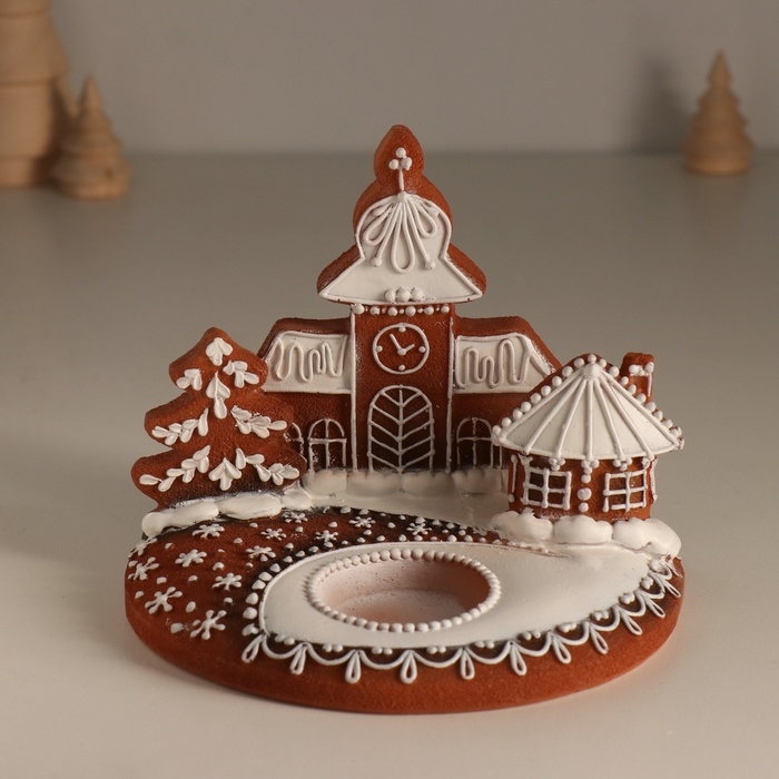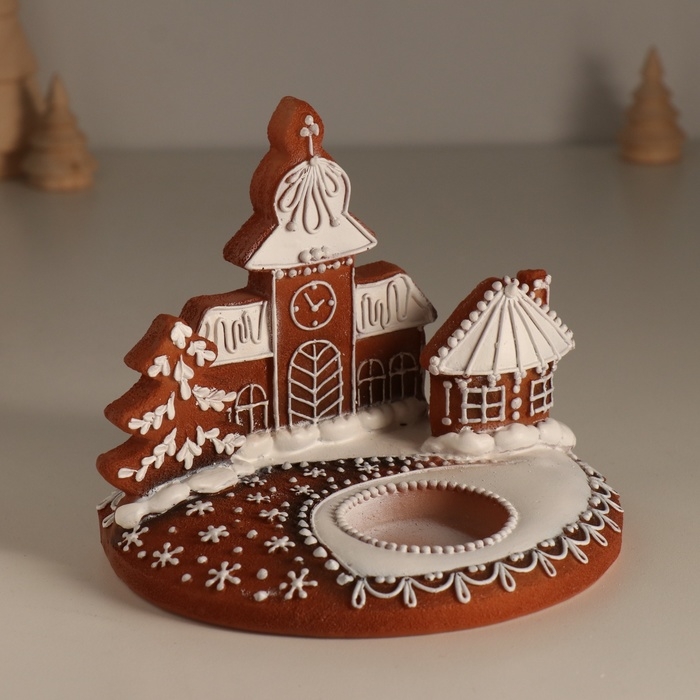 Подсвечник полистоун на 1 свечу "Часовня из имбирных пряников" 15х11,5х12,5 см
