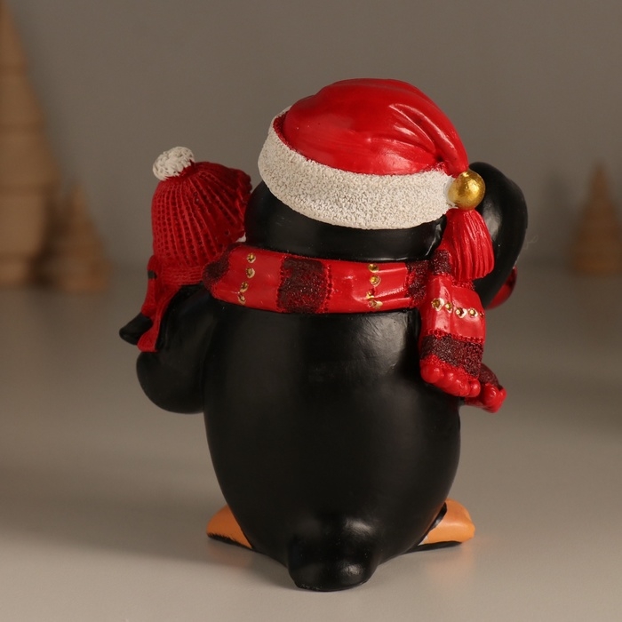Сувенир полистоун "Пингвин с малышом и ёлочным шариком" 11х7,5х12 см