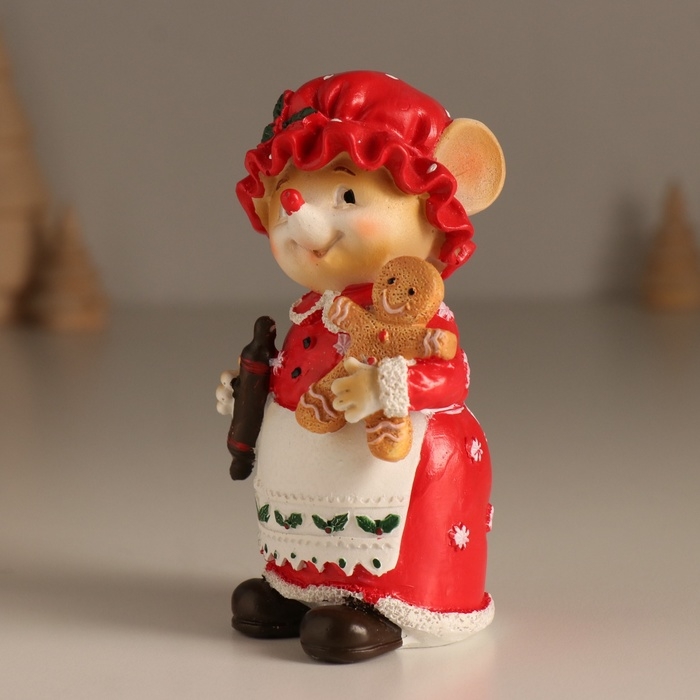 Сувенир полистоун "Мышка в красном с белым передником, с имбирной печенкой" 7х5,5х11,5 см