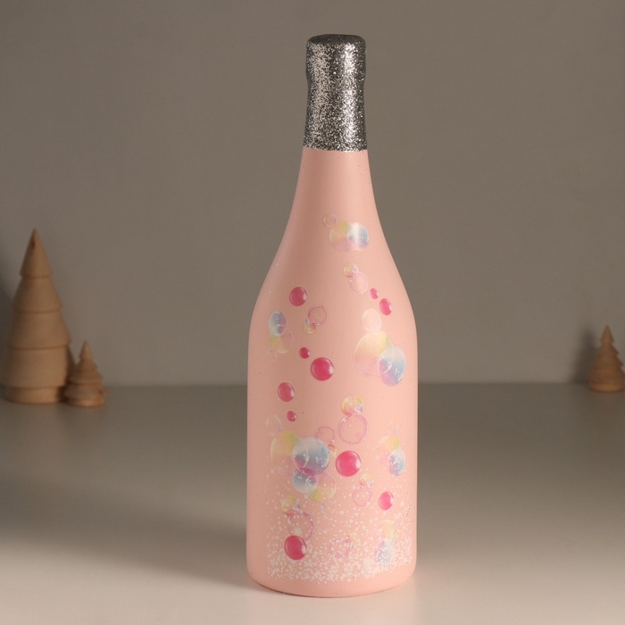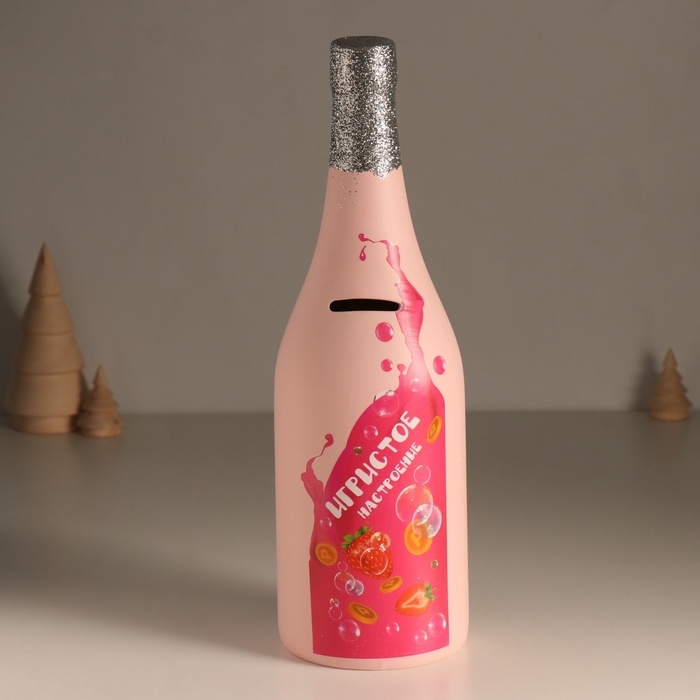 Копилка керамика "Бутылка шампанского - Игристое настроение" розовая 9,5х9,5х30 см