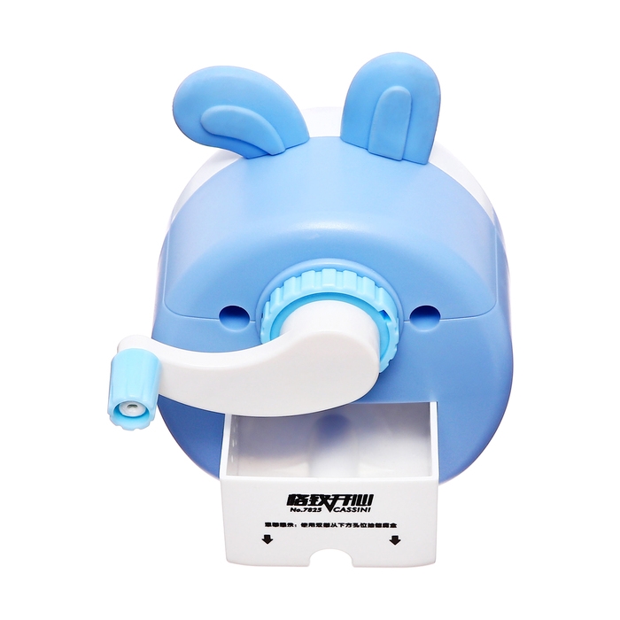 Точилка механическая с контейнером, Ушки синий/белый