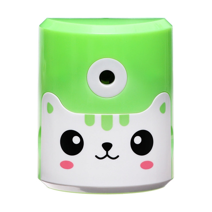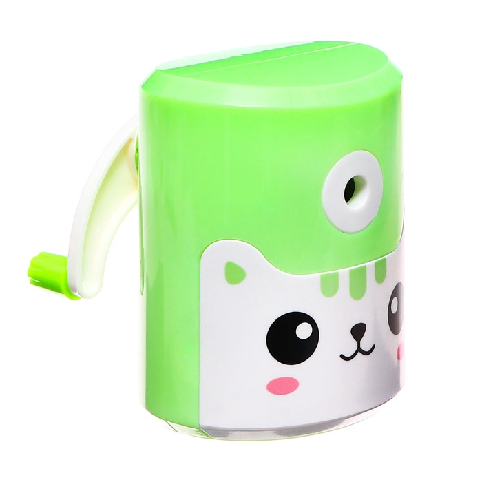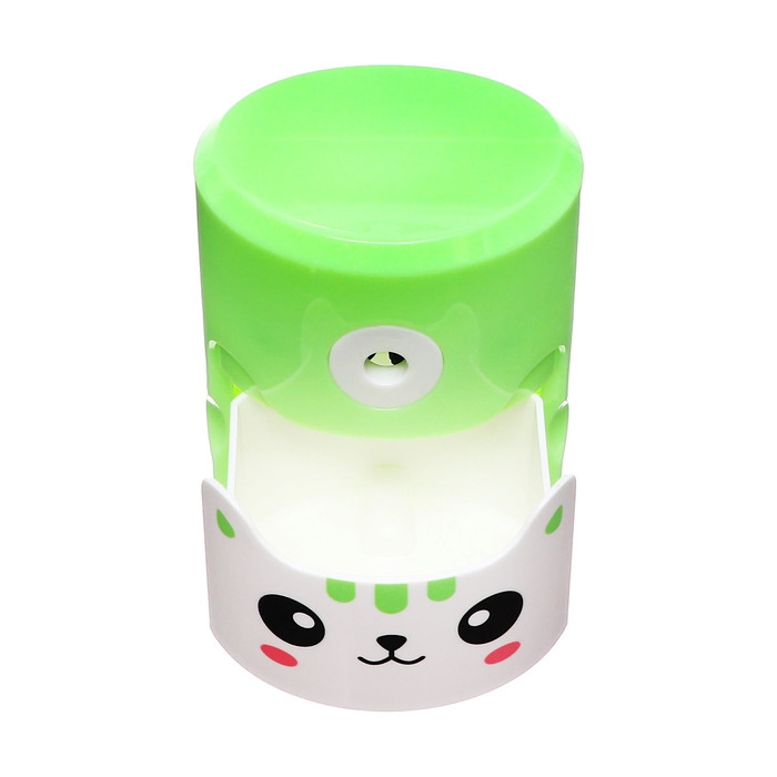 Точилка механическая с контейнером, Котик зеленый
