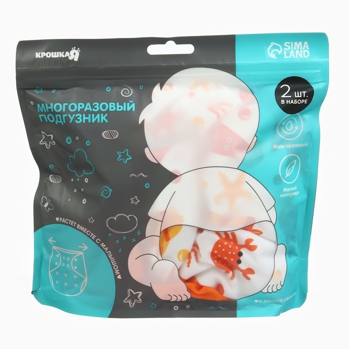 Набор многоразовых подгузников «Крабик», 3-8 кг, цвет белый, оранжевый, 2 шт., Крошка Я