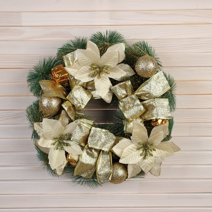 Венок новогодний d-30 см "Фестиваль блеска" цветы банты