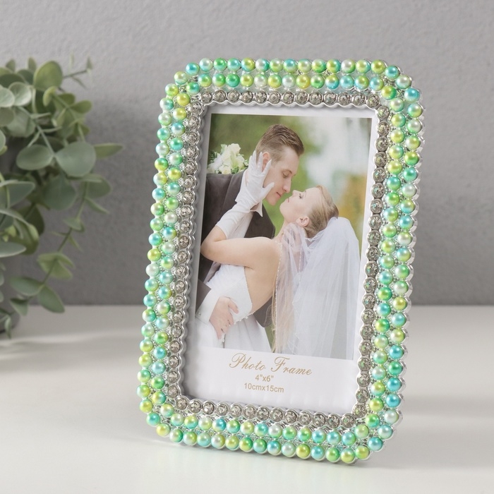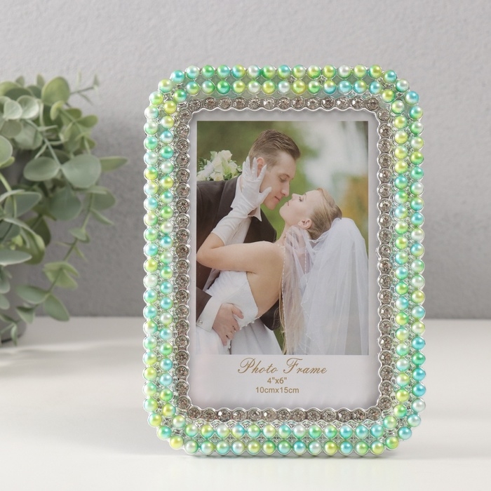 Фоторамка пластик 10х15 см "Зелёно-голубой жемчуг стразы" закруглённые углы 1,8х12,5х17,5 см 10527