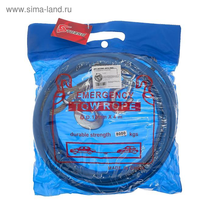 Трос буксировочный TORSO, металлический в ПВХ оплётке, 4м, 8 тонн, 2 крюка