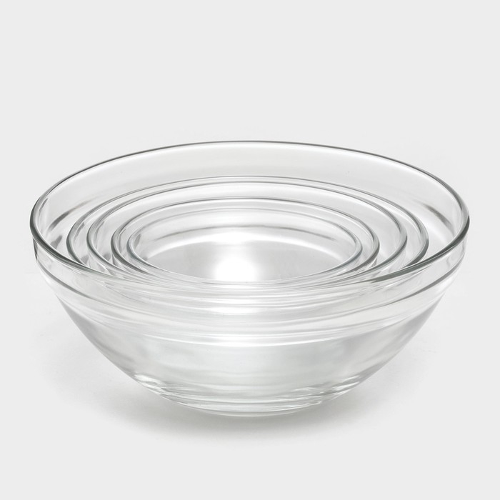 Салатники Доляна «Классика», с крышками, набор 5 шт.: 900 /500/350/200/130 мл, стекло, зелёные