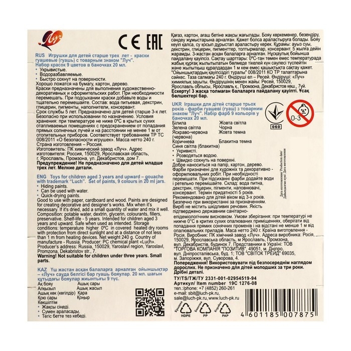 Гуашь 9 цветов х 20 мл "Классика" поможет вашему ребёнку создавать красивые яркие картинки, выдумывать невероятные сюжеты и воплощать их в реальность, развивая цветовое восприятие, зрительную память, воображение, мелкую моторику пальцев, ассоциативное, аналитическое и творческое мышление.