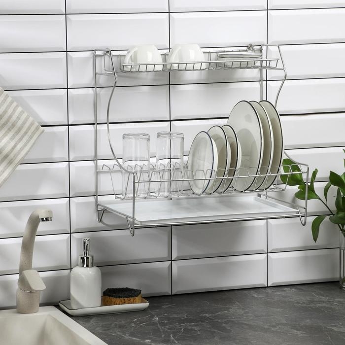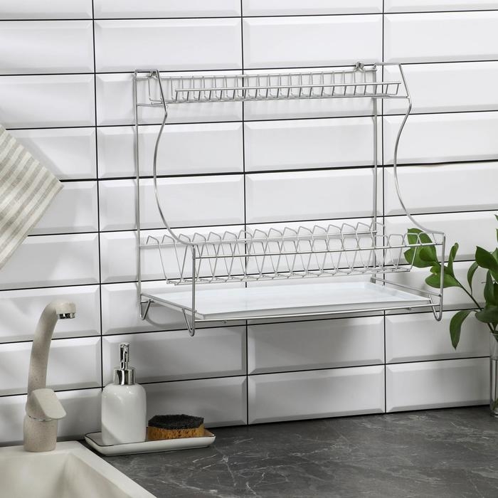 Сушилка для посуды с поддоном 2-х ярусная, настольно-настенная, 39,5×25×38 см, цвет хром