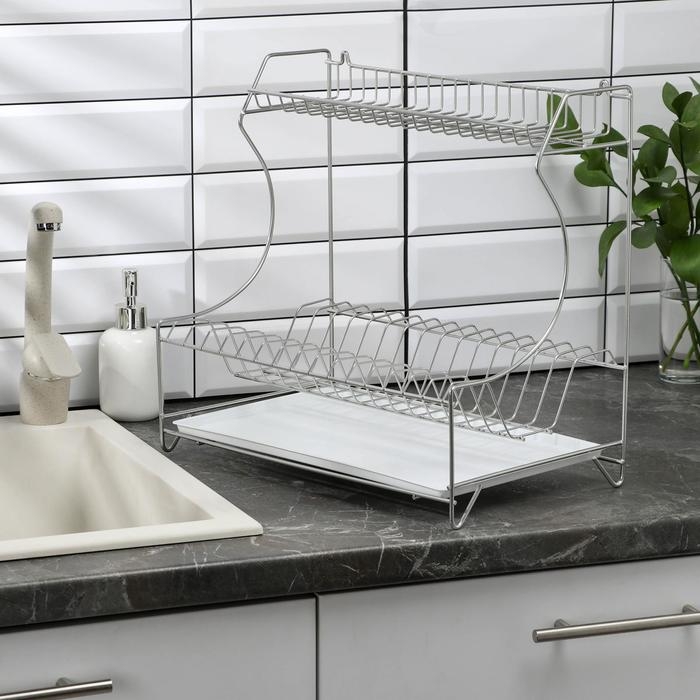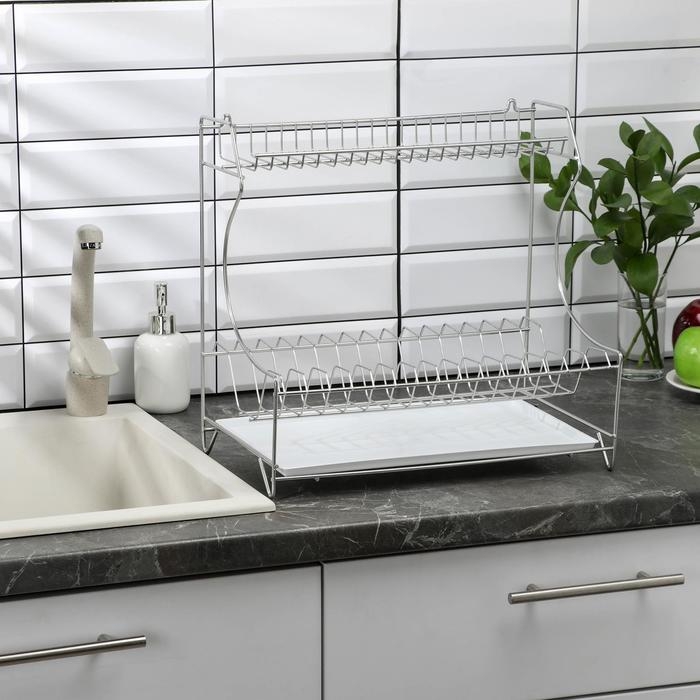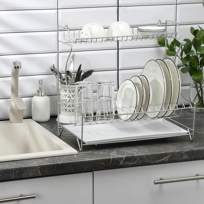 Сушилка для посуды с поддоном 2-х ярусная, 24×40×38 см, цвет белый
