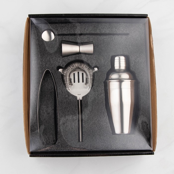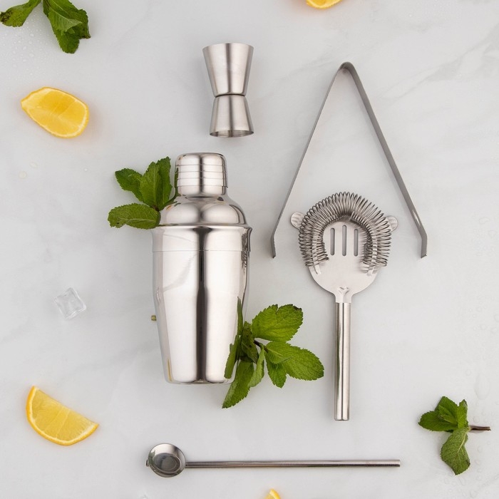 Набор для бара «Биг Джон», 5 предметов: щипцы, стрейнер, ложка, шейкер, джиггер, нержавеющая сталь