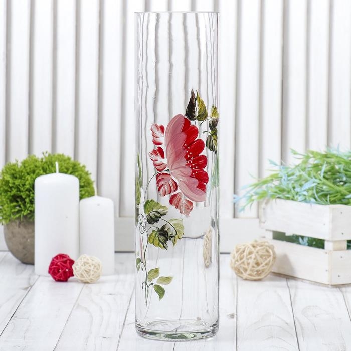 Ваза "Цилиндр" d 80*h 300 мм. Из прозрачного стекла (ручная роспись) рис. № 18 (З.Р.)