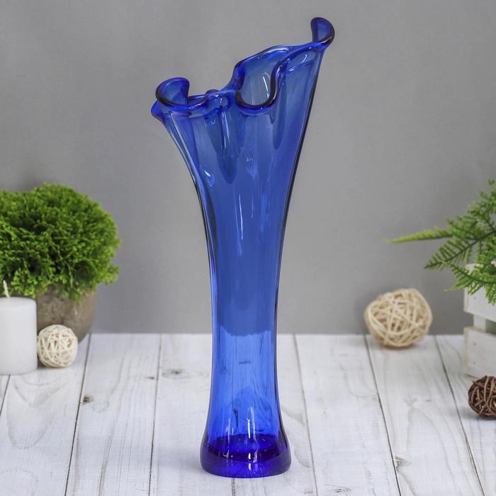 Ваза "Волна" h 280 мм. из синего стекла (без декора)