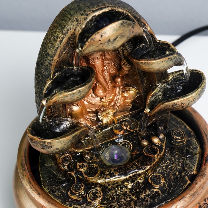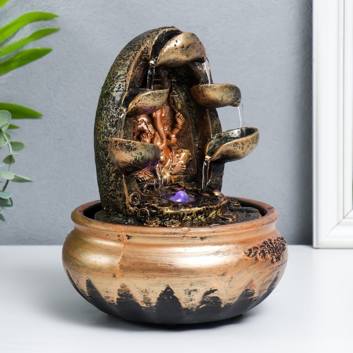 Фонтан настольный от сети, подсветка "Бронзовый Ганеша и лотосы" 22х13х13 см