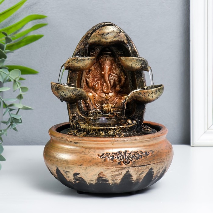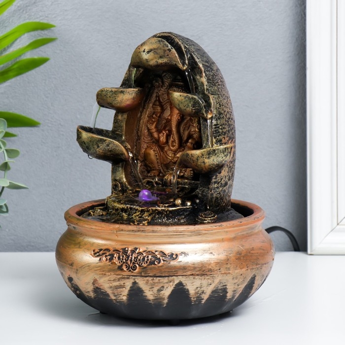 Декоративный фонтанчик наполняет дом уютом. Особенно актуально иметь фонтан настольный с подсветкой "Ганеша с 5-ю чашами" 22,5х16х16 см в квартирах. В таких помещениях чаще всего царит энергетический дисбаланс, а этот предмет восстановит равновесие между Инь и Ян.