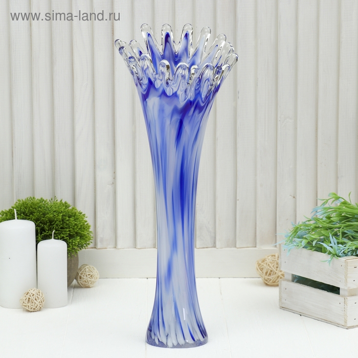 Ваза "Коралл" 14х18х38 см, бело-синяя