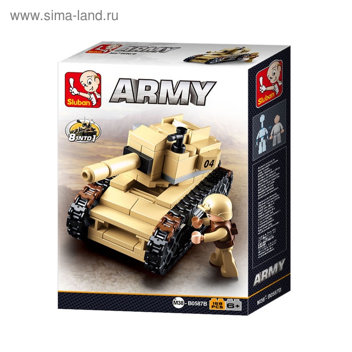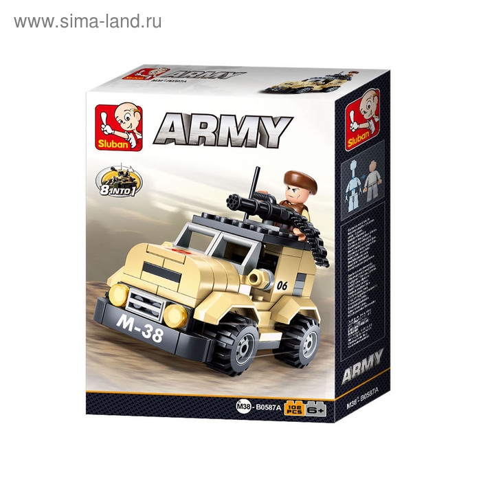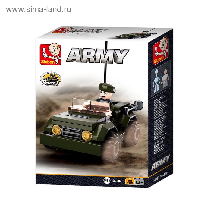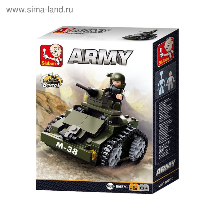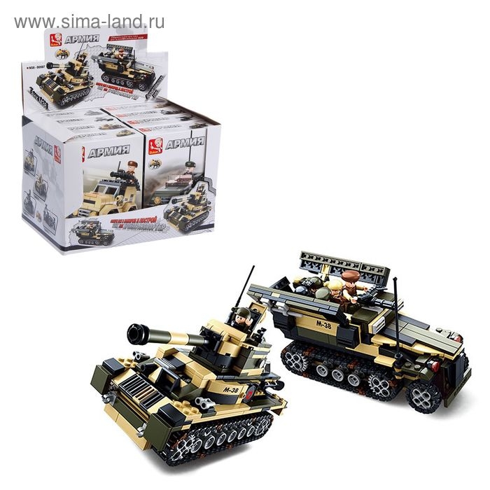 МИКС включает восемь различных видов спецтранспорта. Выбор конкретной техники не предоставляется. Объедините наборы, и тогда у вас получится модель танка М38 или реалистичный бронетранспортёр.
