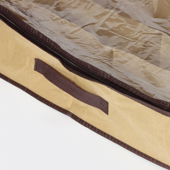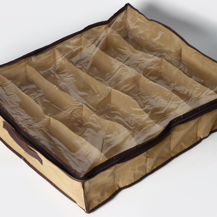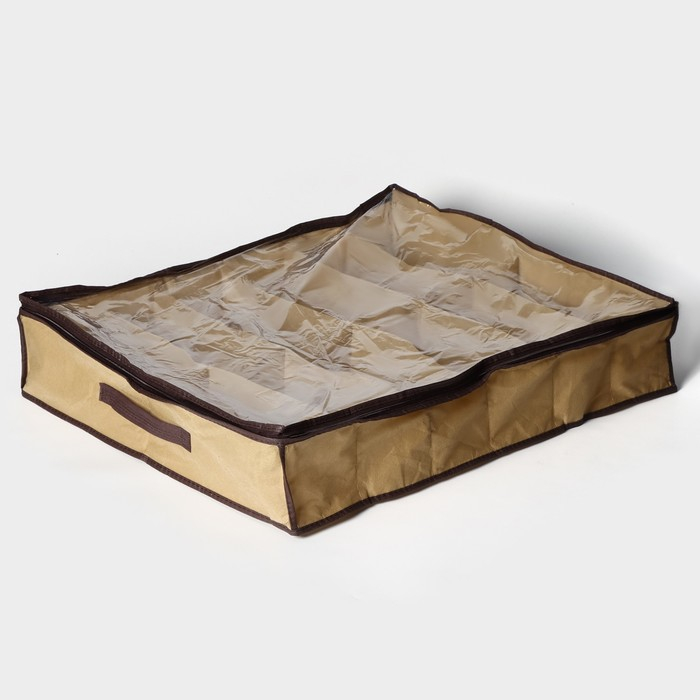 Кофр для обуви Доляна, 12 отделений, 65×54×10 см, цвет бежевый