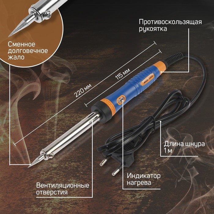 Паяльник ТУНДРА, двухкомпонентная рукоятка, долговечное жало, 60 Вт, 220 В