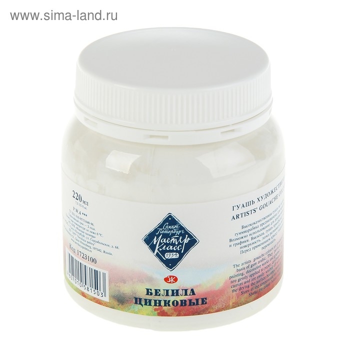 Гуашь художественная в банке 220 мл, ЗХК "Мастер класс", белила цинковые (1723100)